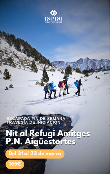 Generalmente la edad media se sitúa entre los 28 y los 54 años. ¡INFINI organiza salidas todo el año en Pirineos y posiblemente algunas personas ya se conocen de escapadas anteriores, así que el ambiente es muy amigable!