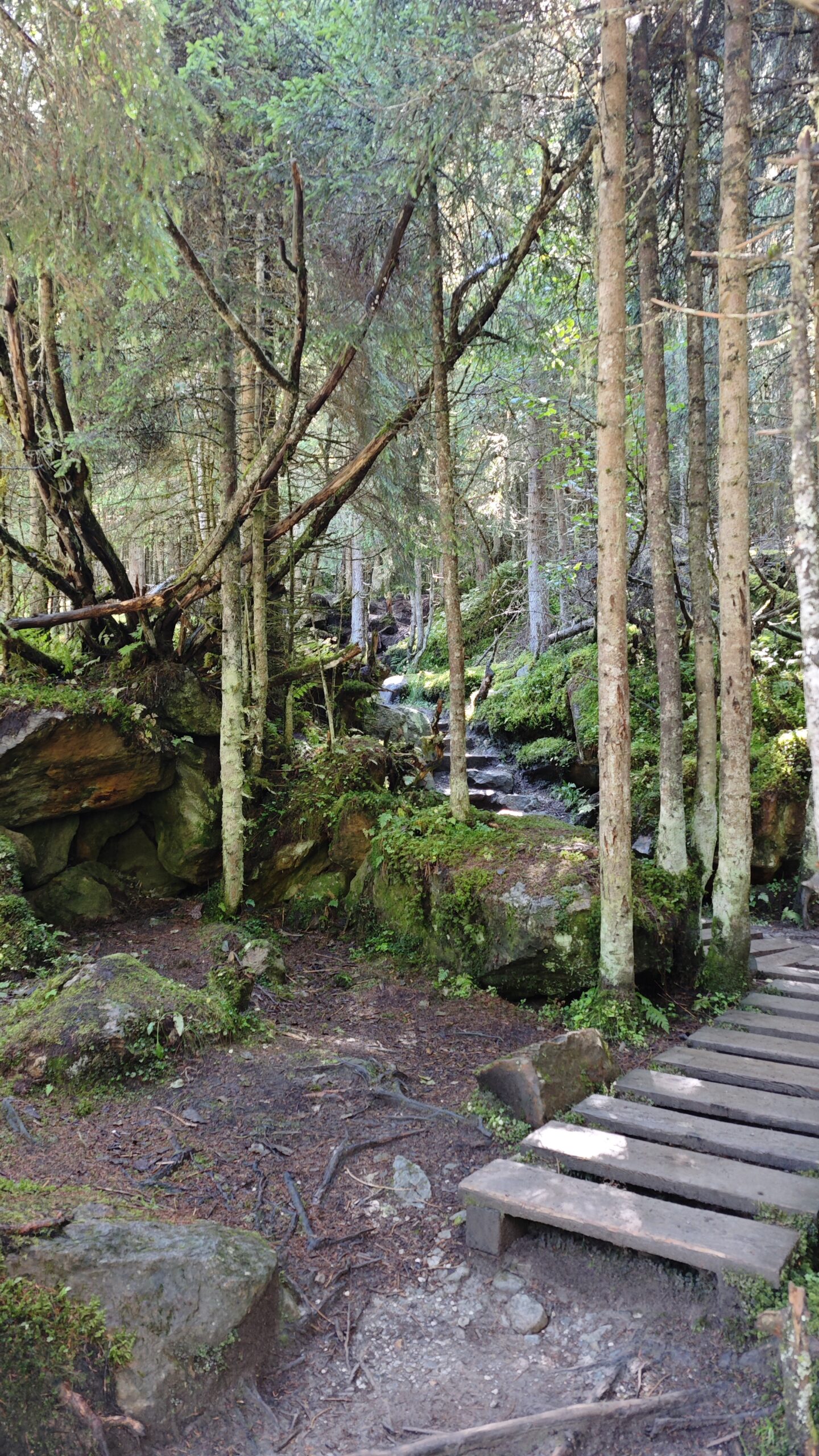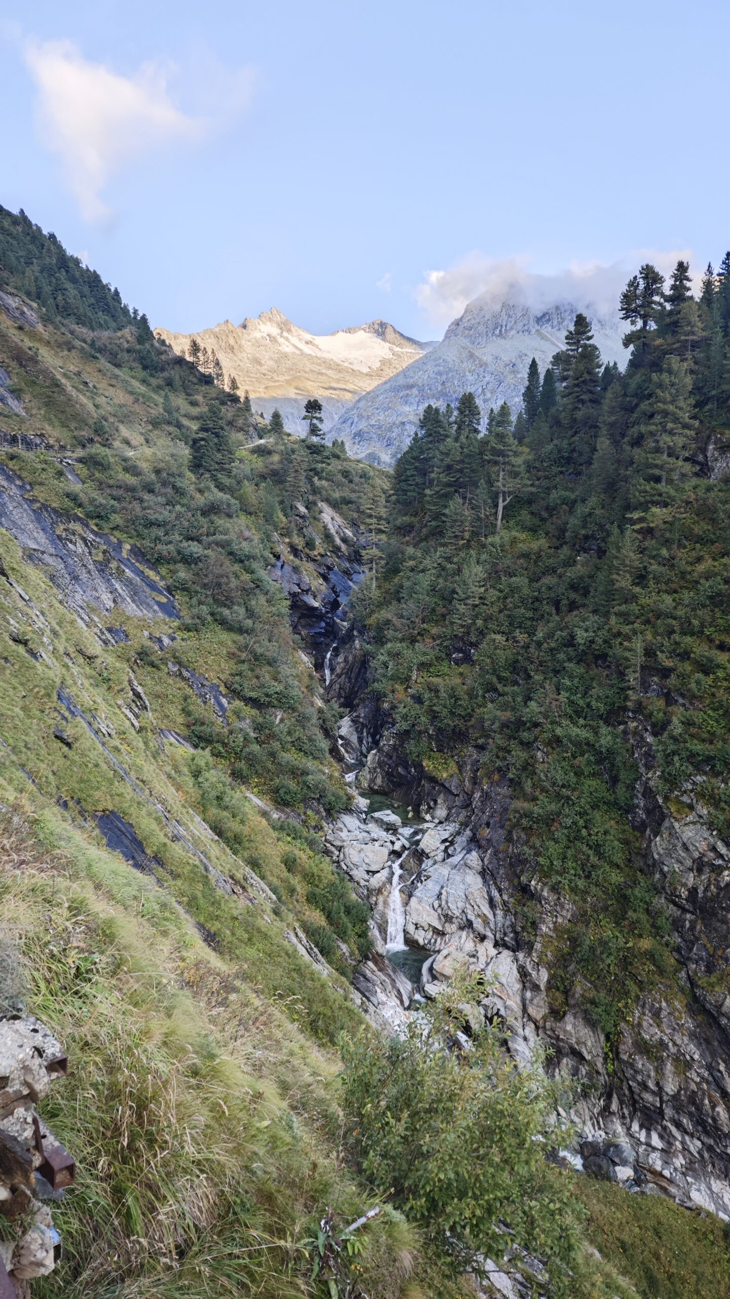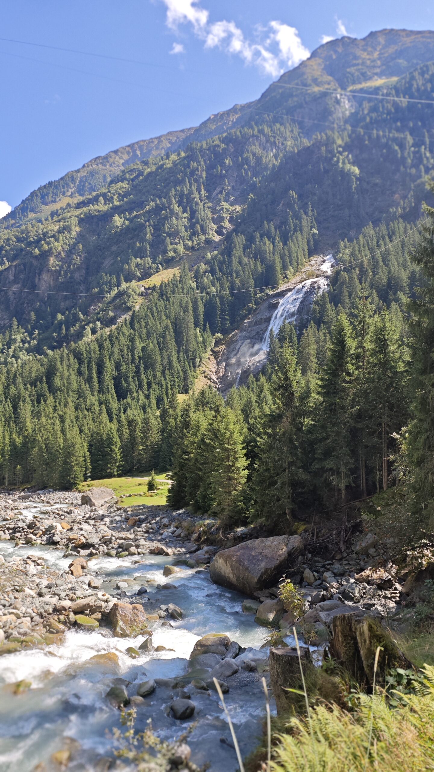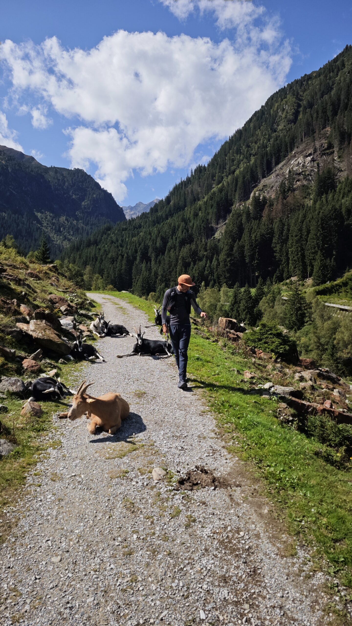 Desde el pintoresco pueblo de Ginzling, iniciamos la subida hacia el Alpenrosehütte, remontando el valle por una pista cómoda que se adentra poco a poco en un paisaje de una belleza salvaje y serena. Los bosques de abetos dan paso a claros con vistas impresionantes sobre las cumbres glaciares y el murmullo de los torrentes nos acompaña durante la caminata.