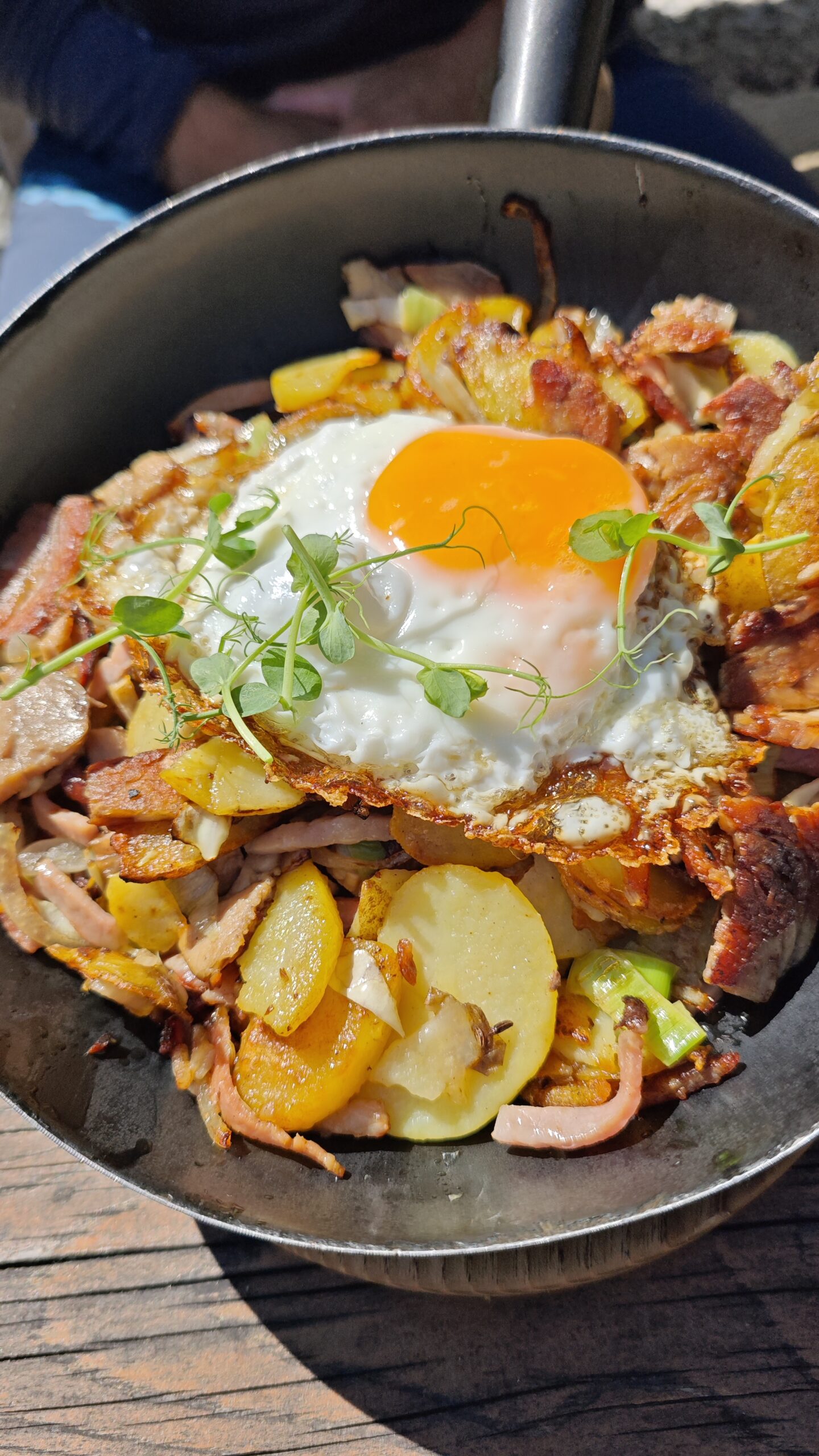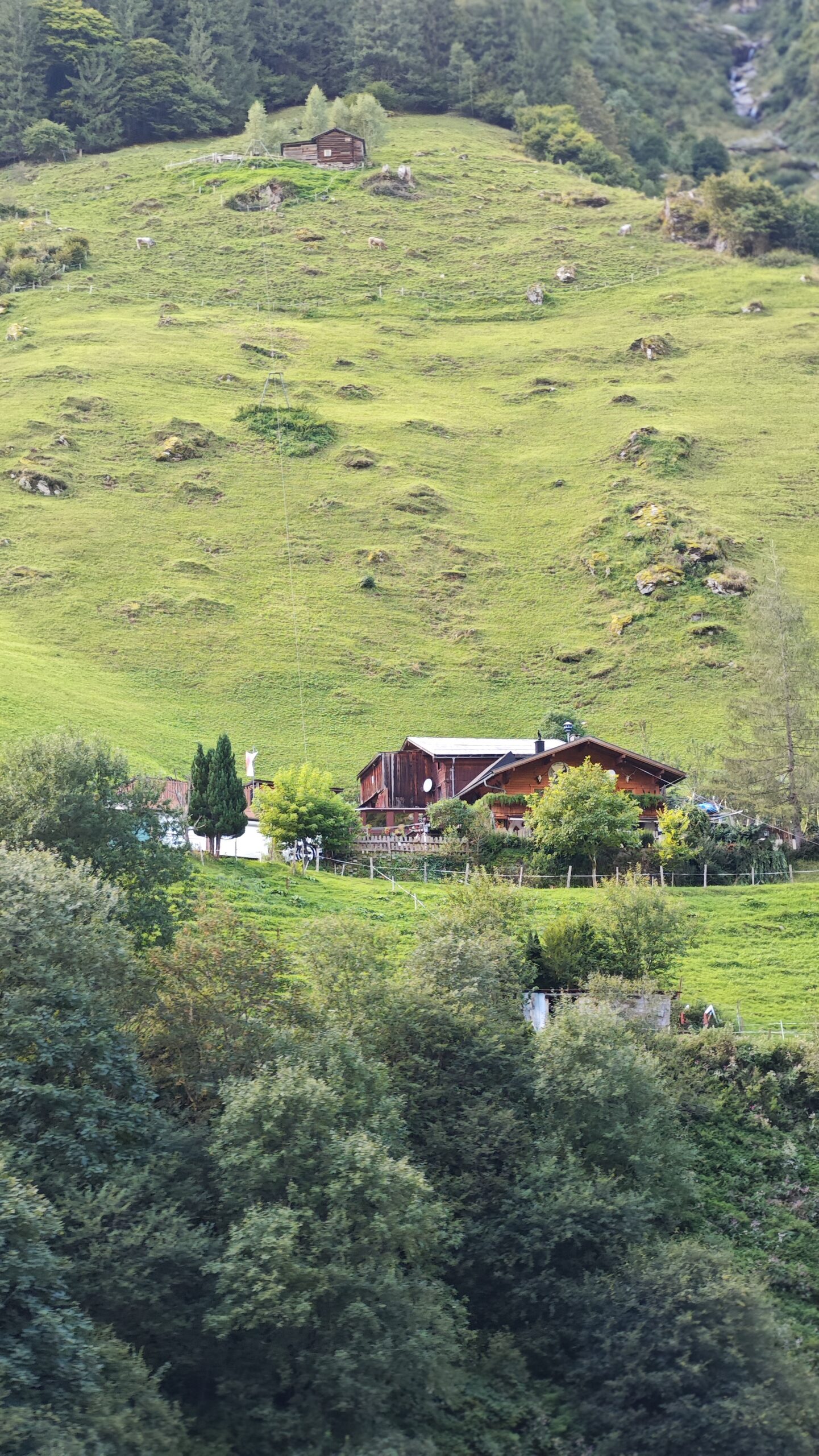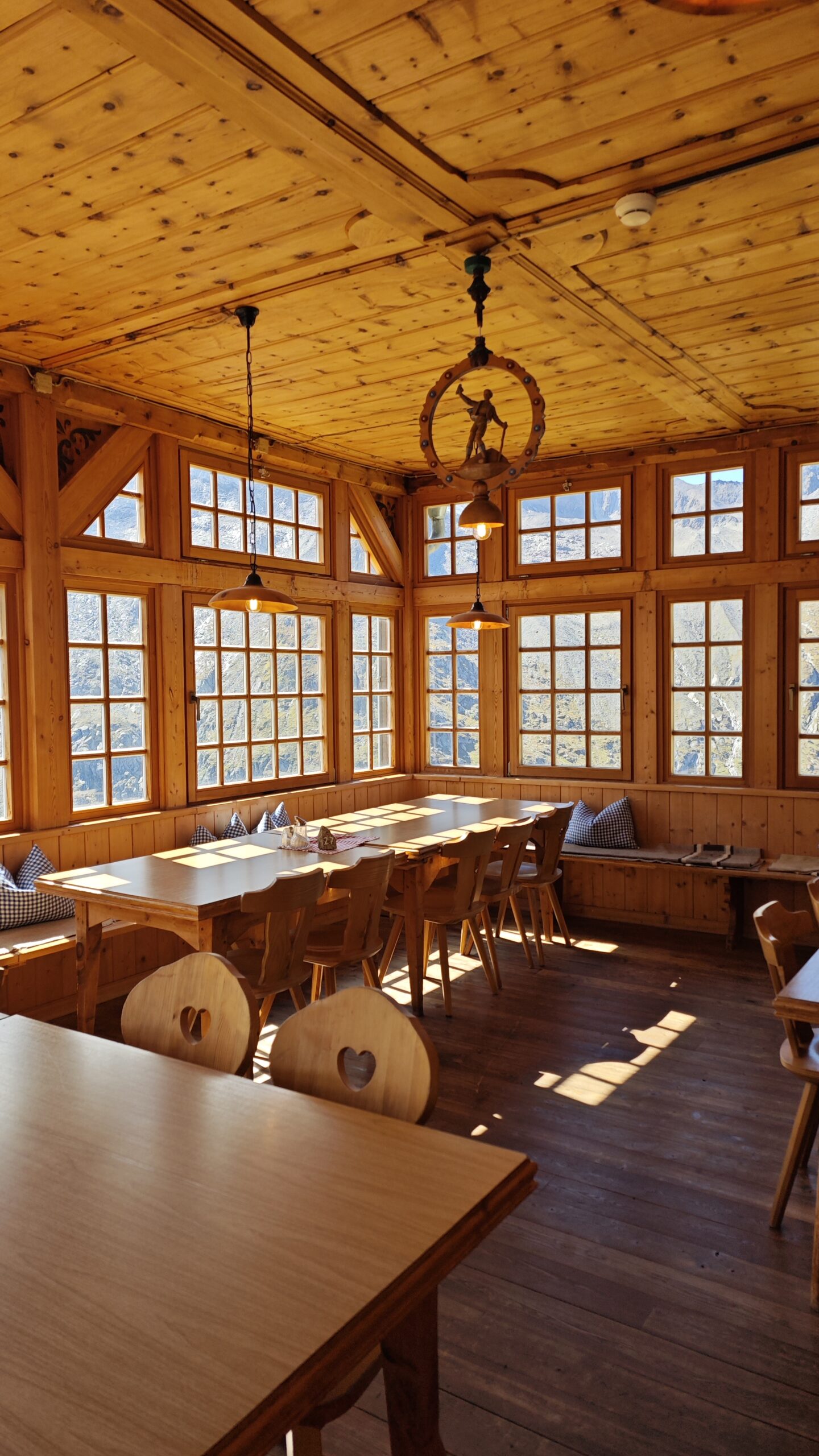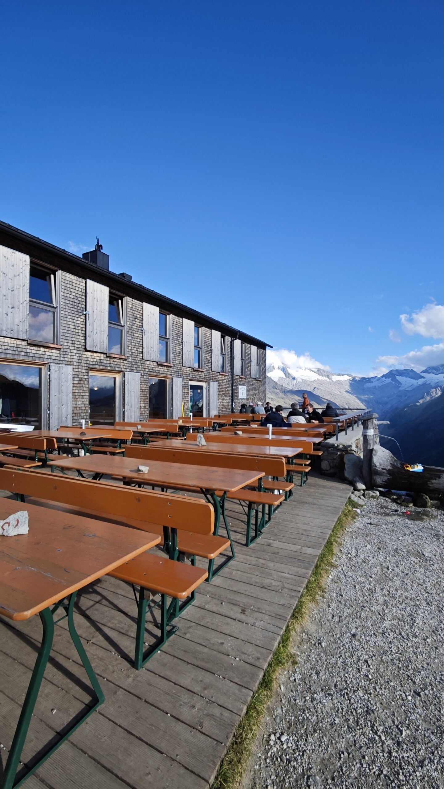 A medida que ganamos altura, el valle se vuelve más abierto y solitario, ofreciendo una sensación de aislamiento total, perfecta para desconectar. Llegamos finalmente al Alpenrosehütte, un refugio acogedor con una terraza panorámica ideal para disfrutar del atardecer sobre las montañas.