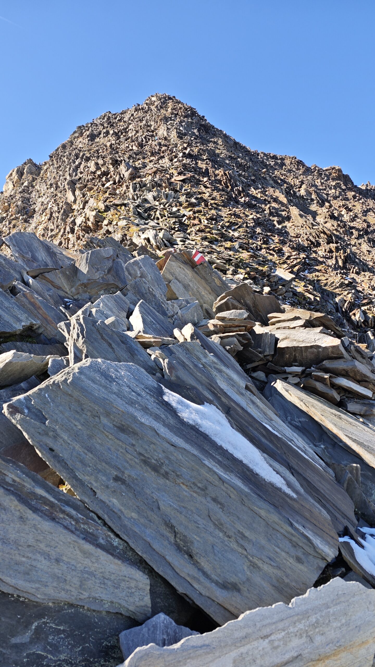 Coronamos la cima a 3.133 m, junto a su cruz, con unas vistas que abarcan glaciares, crestas y valles infinitos. El descenso se realiza por un destrepe, para luego enlazar con una senda más amable que nos conduce al refugio Furtschaglhaus, colgado frente a los hielos eternos. Un lugar mágico donde descansar tras una jornada inolvidable.