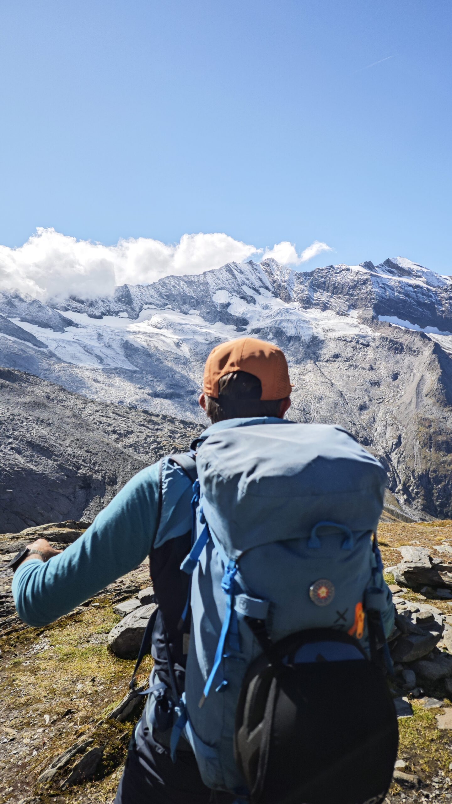 Continuamos la travesía atravesando morrenas glaciares y zonas de alta montaña hasta alcanzar el lago Grünausee, un espejo turquesa enclavado entre picos y nieves perpetuas, uno de los rincones más bellos del valle. Desde aquí solo nos separa un último ascenso hasta el Bremerhütte (2.413 m), un refugio auténtico y acogedor, rodeado de un paisaje impresionante de glaciares y crestas afiladas.