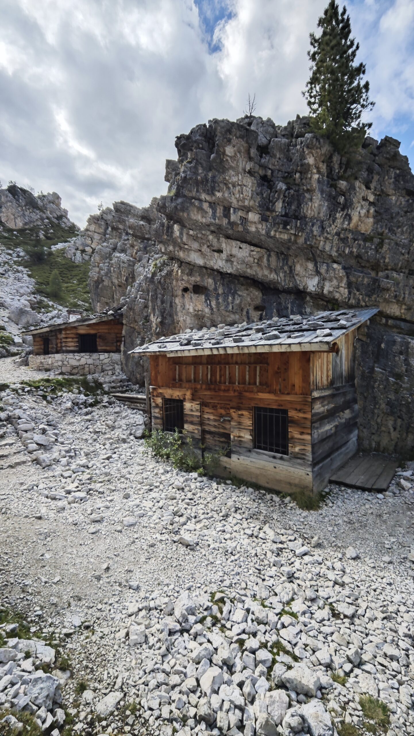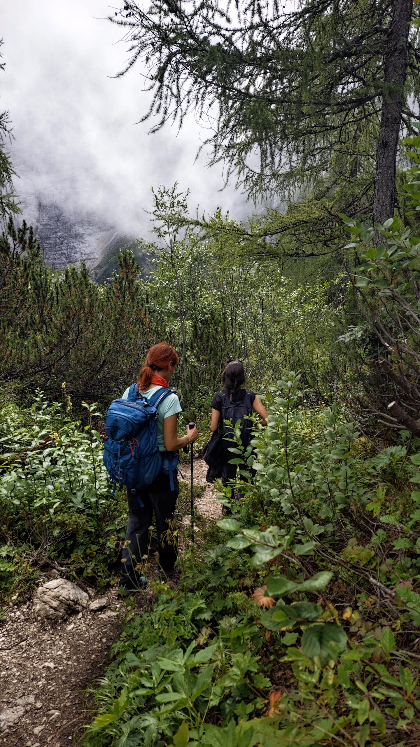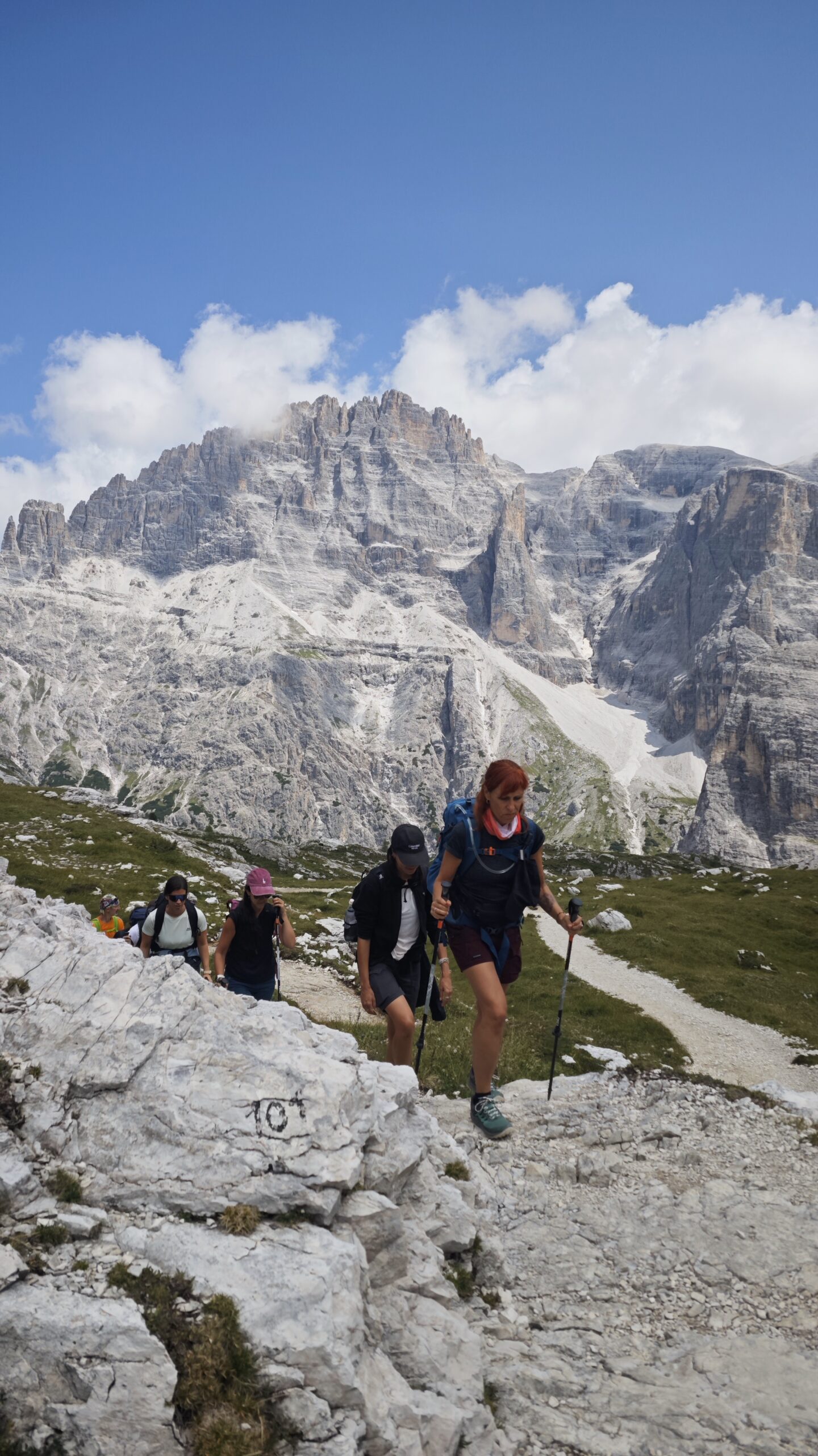 Iniciamos el viaje en la zona de Cortina d’Ampezzo con una ruta circular sorprendente. Caminamos entre las formaciones icónicas de 5 Torri, pasando por praderas, bosques y paredes legendarias de escalada, siempre rodeados de paisajes alpinos de postal.