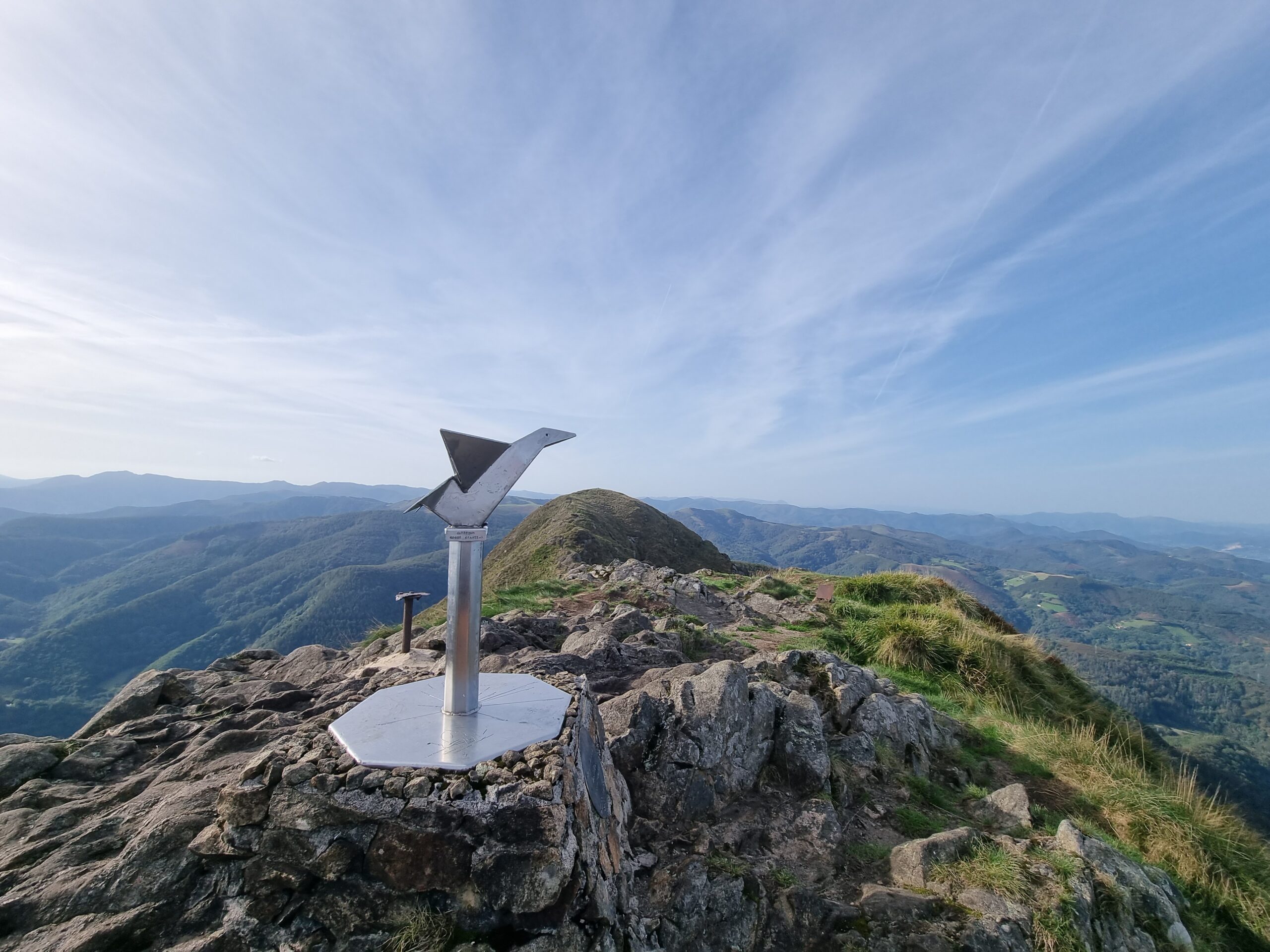 El itinerario avanza en un agradable sube y baja, encadenando collados y zonas rocosas sencillas, siempre sin dificultad técnica, hasta alcanzar las 3 cumbres graníticas de Aiako Harria o Peñas de Aya. Desde lo alto disfrutamos de amplias vistas sobre los valles interiores, el bosque atlántico y, en días claros, incluso el mar.