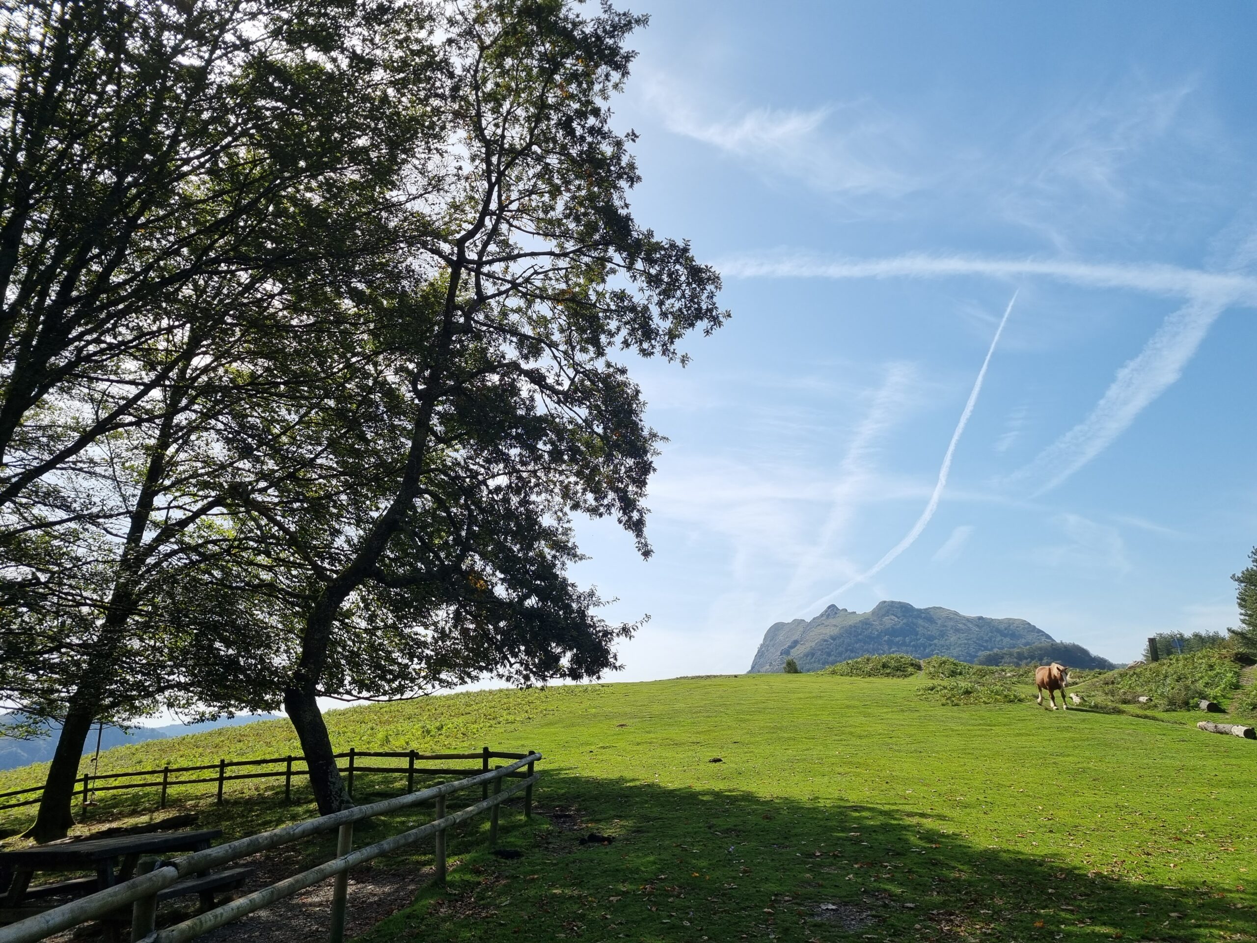 Aquí realizamos una ruta circular variada y entretenida, en un entorno donde el paisaje se abre entre hayedos y praderas. No es raro encontrar en esta zona al pottok, el caballo autóctono del País Vasco, pequeño, robusto y perfectamente adaptado a estas montañas, que suele pastar en libertad.