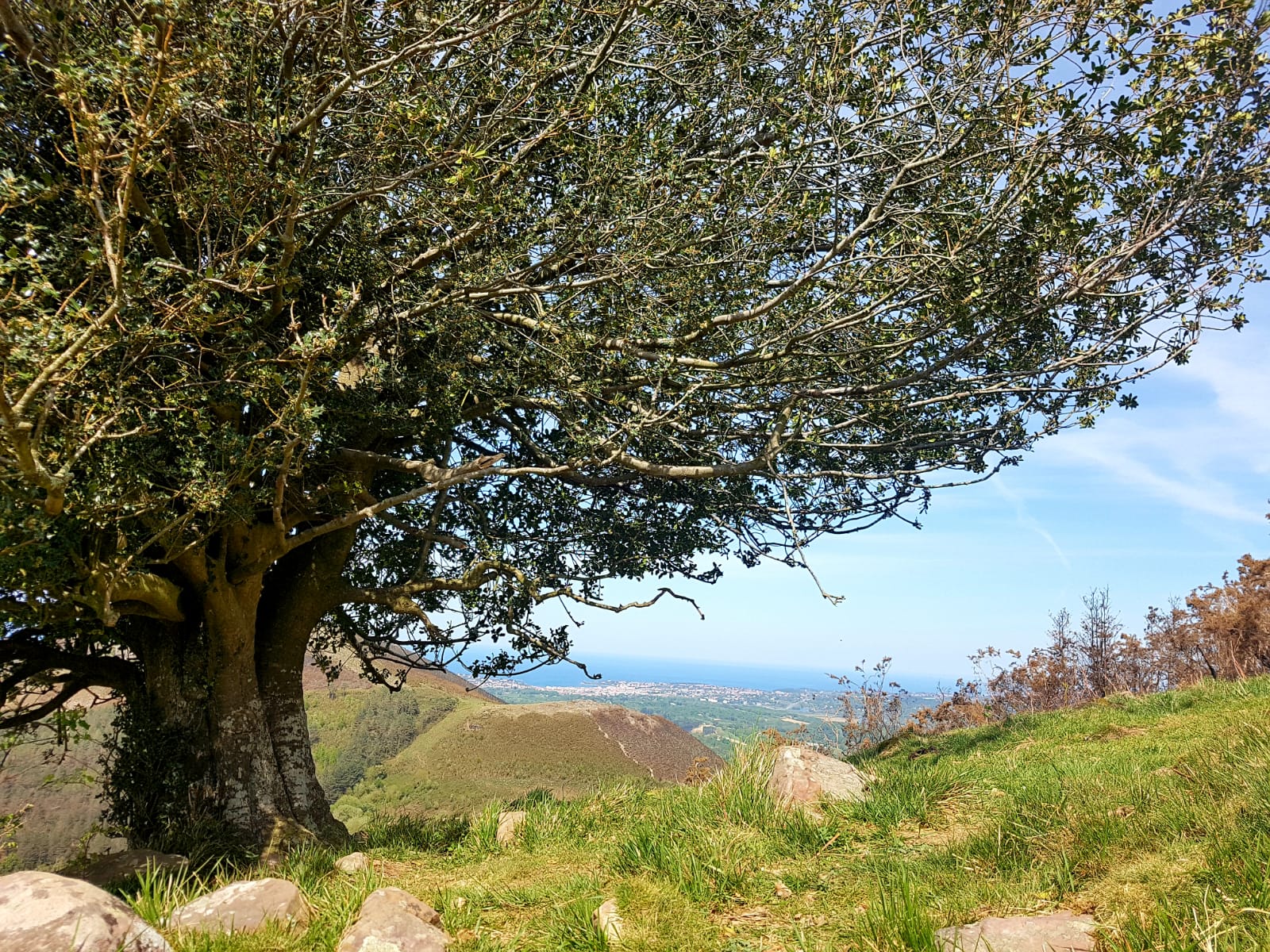 La ruta asciende por la cara sur de la montaña, avanzando entre colinas suaves y hayedos que, poco a poco, nos conducen hacia un paso natural en la roca. Desde esta brecha rocosa, el terreno se abre y nos permite alcanzar la cima, desde donde disfrutamos de un paisaje amplio y luminoso, con el mar y las montañas como protagonistas.