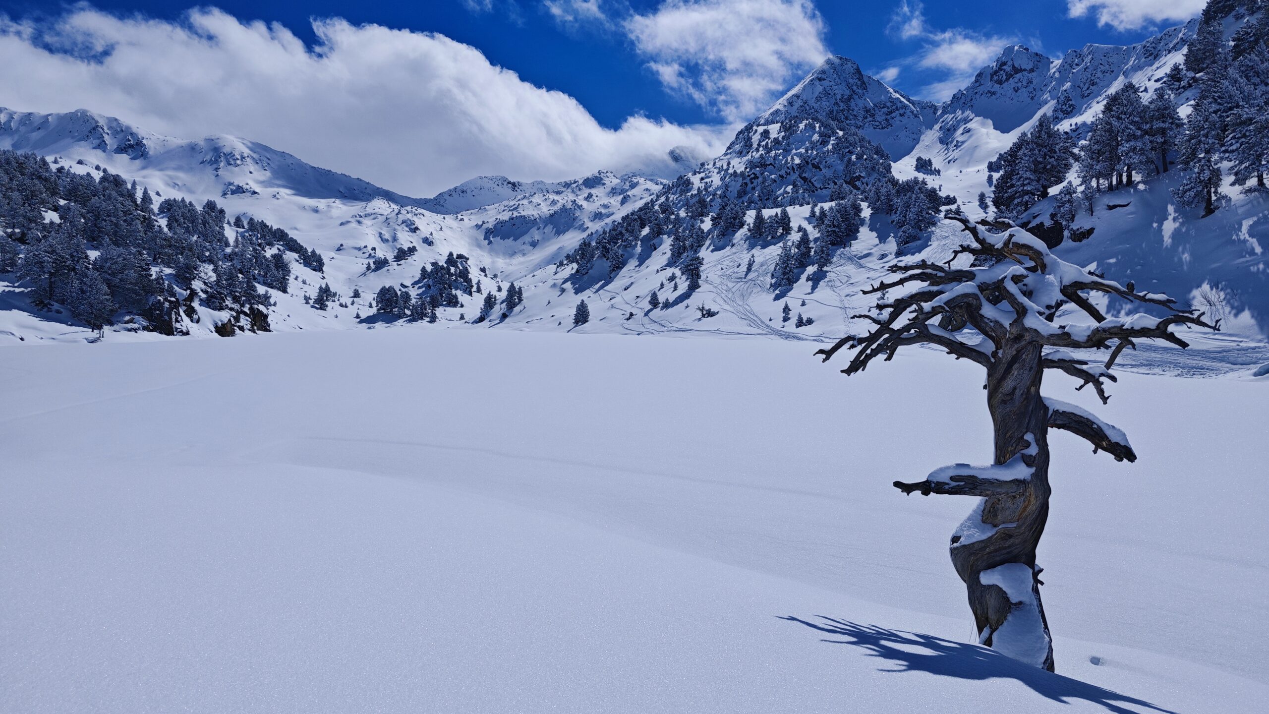 Farem dos recorreguts de senderisme hivernal (raquetes o minigrampons depenent de l’estat de la neu). Una en una zona preciosa i retirada a la vora del famós Circ de Colomers al P.N d’Aigüestortes i Estany Sant Maurici i l’altra a la zona de Baqueira-Beret, més freqüentada però que compta amb diversos llacs fantàstics d’origen glacial.