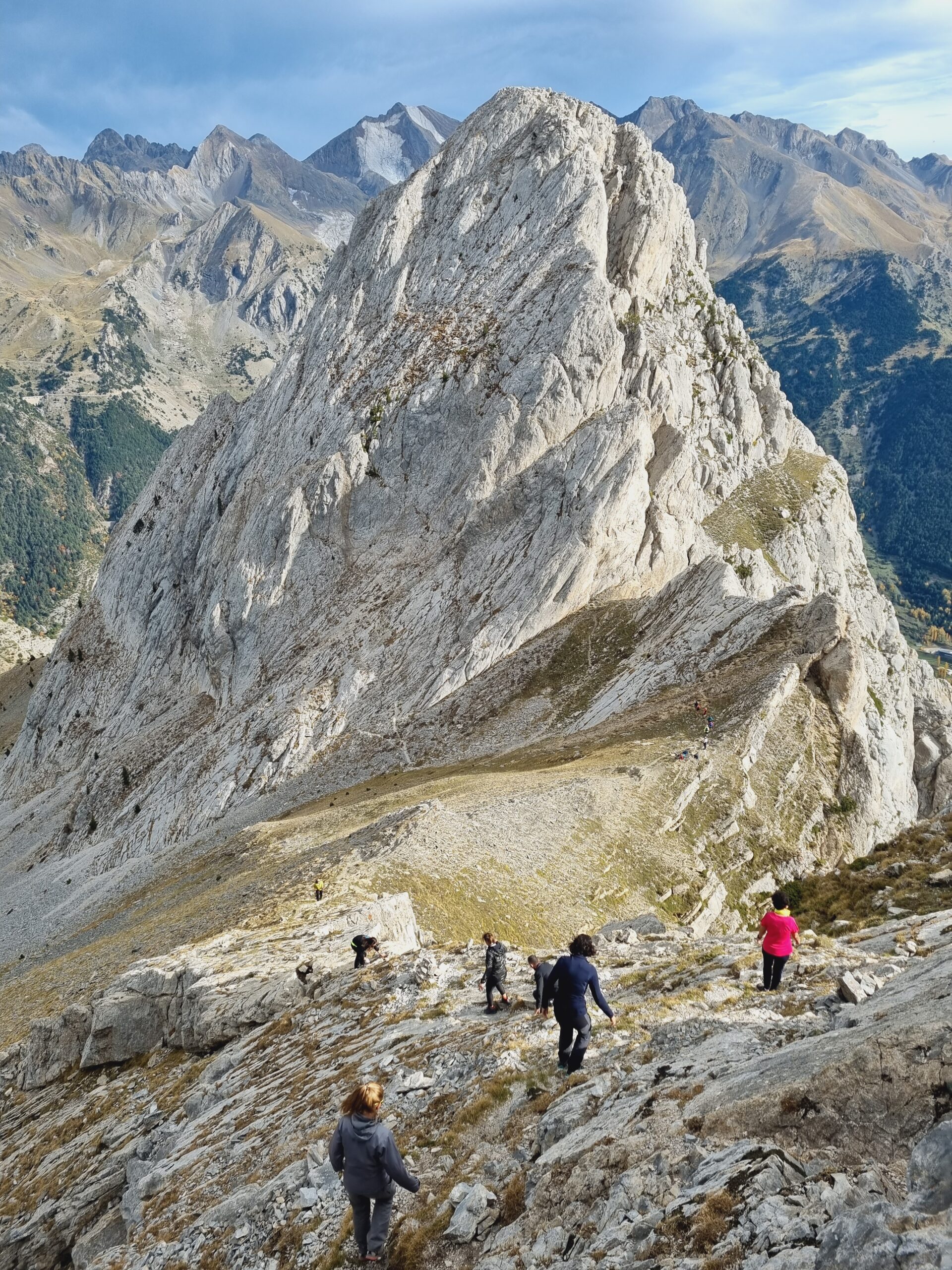 També pujarem al Pic Peyreget, un magnífic mirador situat davant de l’imponent Pic du Midi d’Ossau, un dels cims més icònics del Pirineu francès.